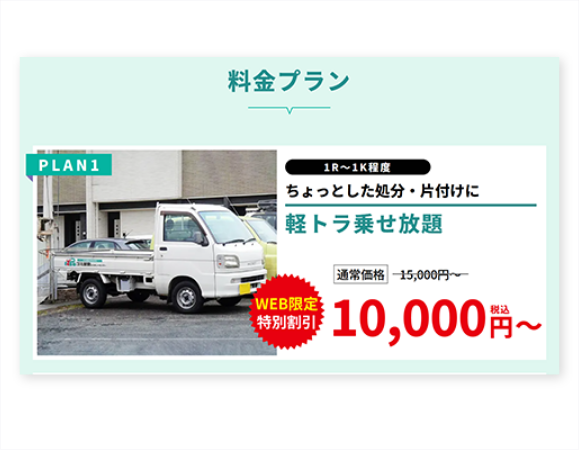 - 軽トラ乗せ放題(1R ~ 1K):15,000円〜